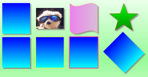 Der Blatthintergrund und die meisten Felder können nicht nur vielfältige Farbverläufe, auch zu Transparent, besitzen, sondern durch den eingebauten Füllmustergenerator sind unzählige Muster z.B. "Blumen", "Sterne", Vichymuster und Tartan ("Schottenmuster") möglich. (Hier einige Beispiele!) Alle Füllmuster stehen auch für die Füllung von Schriftzeichen zur Verfügung.