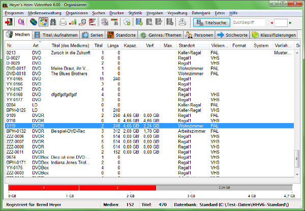 In dieser Funktionen werden alle erfassten Medien aufgelistet. Die Liste kann durch Klick auf den jeweiligen Spaltenkopf entsprechend sortiert werden.