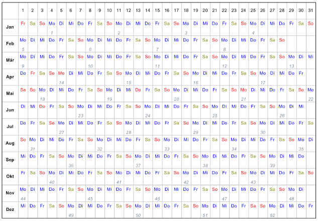 Hier eine Übersicht über die Möglichkeiten eine Jahresübersicht darzustellen: